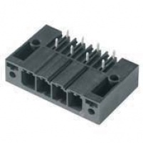 PCB plug-in connector, male header, Clip-on flange, Solder connection, 7.62 mm, 270°, Solder pin length (l): 3.5 mm, tinned, Black, Box
